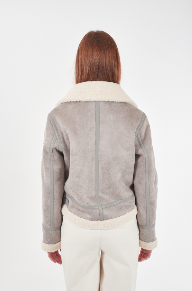 Bomber corto, collo in piedi con doppio cinturino logato, 2 tasche laterali sul davanti, cinghie di serraggio in vita.
