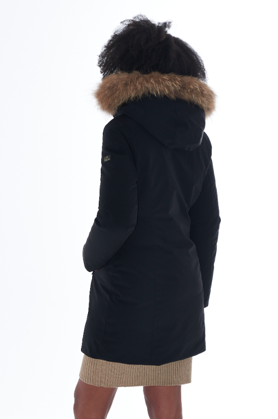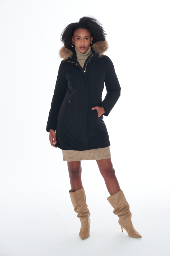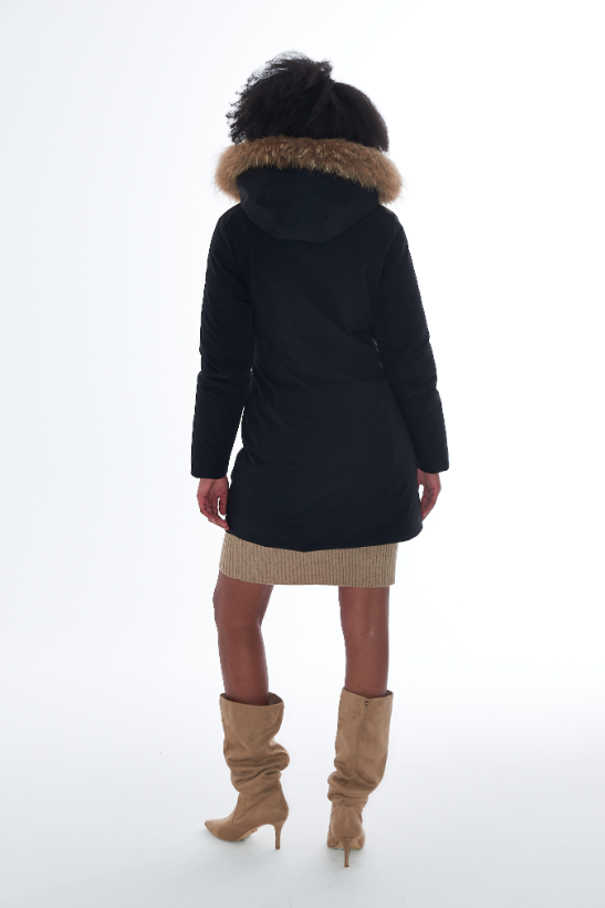 Cappuccio rifinito con un bordo in morbida ecopelliccia